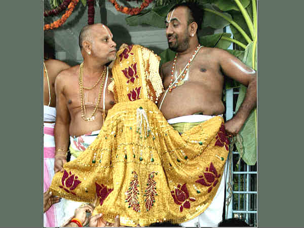 ಗುಂಟೂರು ಸಂಸದರೂ ಆಗಿರುವ ರಾಯಪತಿ ಸಾಂಬಶಿವರಾವ್ರ ಪರವಾಗಿ ಅವರ ಟ್ರಾನ್ಸ್ ಟ್ರಾಯ್ ಇಂಡಿಯಾ ಕಂಪನಿಯ ಅಧ್ಯಕ್ಷ ಮತ್ತು ವ್ಯವಸ್ಥಾಪಕ ನಿರ್ದೇಶಕ ಚೆರುಕೂರಿ ಸುಧಾಕರ್, ದೇಗುಲದ ಆಡಳಿತ ಮಂಡಳಿಗೆ ಸೀರೆಯನ್ನು ಹಸ್ತಾಂತರಿಸಿದರು.