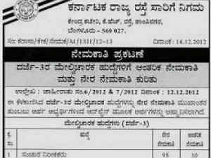 ಇದು ಇಡೀ ರಾಜ್ಯದ ನಾಲ್ಕೂ ನಿಗಮಗಳಿಗೆ ನೇಮಕಾತಿ ನಡೆಯಲಿದೆ. ಅರ್ಜಿಯನ್ನು 17.12.2012 ರಿಂದ 07-12-2013 ನಡುವೆ ಇಂಟರ್ ನೆಟ್ ಮೂಲಕವೇ ಸಲ್ಲಿಸಬೇಕಾಗಿದೆ.