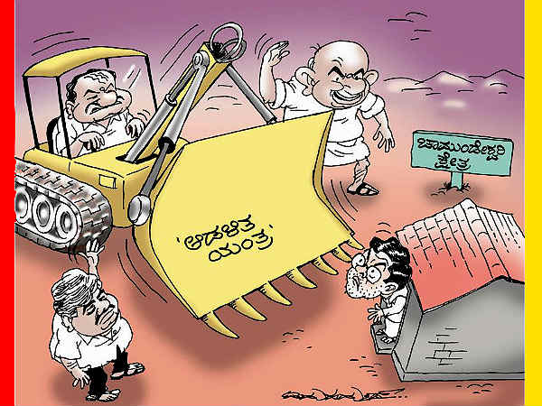 ಆದರೆ ದೇವೇಗೌಡರ ಒಳ ರಾಜಕೀಯದ ಫಲವಾಗಿ ಆ ಗದ್ದುಗೆ ಕಳೆದುಕೊಂಡ ಸಿದ್ದರಾಮಯ್ಯ ಮುಂದೆ ಉಪ ಮುಖ್ಯಮಂತ್ರಿ ಸ್ಥಾನದ ಜತೆ ಜೆಡಿಎಸ್ ತೊರೆದು ಕಾಂಗ್ರೆಸ್ ಸೇರಿದಾಗ ಮತ್ತೆ ವಂಚನೆಗೊಳಗಾಗಿಬಿಟ್ಟೆನಲ್ಲಾ ಎಂಬ ಭಾವ ಅವರಲ್ಲಿ ಮನೆಮಾಡಿತು. ಹಾಗೆ ಮಡುವುಗಟ್ಟುತ್ತಾ ಬಂದ ಹತಾಶ ಭಾವ ಇಂದಿಗೆ ತಿಳಿಯಾಗಲಿದೆ. 16 ವರ್ಷ ಹಿಂದೆ ತೊಟ್ಟ ಸಂಕಲ್ಪವನ್ನು ಸಿದ್ದು ಇಂದು ಈಡೇರಿಸಿಕೊಳ್ಳುವ ಮೂಲಕ ದೇವೇಗೌಡರಿಗೆ ...! (ಚಿತ್ರ ಕೃಪೆ: ಹಿರಿಯ ವ್ಯಂಗ್ಯ ಚಿತ್ರಕಾರ ಪಿ. ಮಹಮದ್)