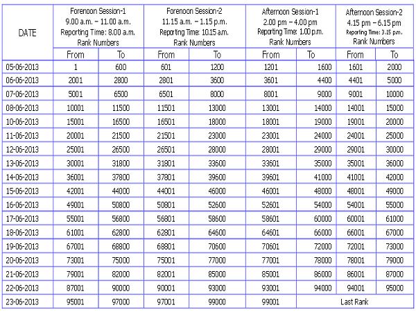 ಕರ್ನಾಟಕ ಸಿಇಟಿ ಕೌನ್ಸಲಿಂಗ್ 2013 ವೇಳಾಪಟ್ಟಿ