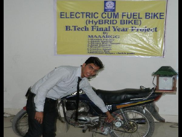 ಬಿ.ಟೆಕ್ ವಿಭಾಗದ ಮುಖ್ಯಸ್ಥ ಎಸ್.ಕೆ ಅರೋರಾ ಅವರ ಮಾರ್ಗದರ್ಶನದಲ್ಲಿ ಈ ಮೋಟರ್ ಸೈಕಲ್ ಅನ್ನು ಪರಿಸರ ಸ್ನೇಹಿಯಾಗಿ ಪರಿವರ್ತಿಸಲಾಗಿದೆ. ಬೈಕಿನ ಚೈನಿನಿಂದ ಪವರ್ ಪಡೆದು 12 V 20 h ಬ್ಯಾಟರಿಗೆ ಶಕ್ತಿ ತುಂಬುತ್ತದೆ. ಬೈಕ್ ಚಾಲನೆ ಸಮಯದಲ್ಲಿ ಬ್ಯಾಟರಿ ಸದಾ ಚಾಲ್ತಿಯಲ್ಲಿರಲಿದೆ. ಅಗತ್ಯ ಬಿದ್ದಾಗ ಮಾತ್ರ ಪೆಟ್ರೋಲ್ ಇಂಜಿನ್ ಬಳಕೆ ಮಾಡಬಹುದಾಗಿದೆ. ಈ ಬೈಕ್ ಚಿತ್ರಗಳು ನಿಮಗಾಗಿ