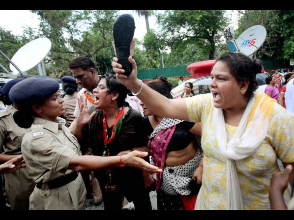 ಹಲವಾರು ಪ್ರತಿಭಟನಾಕಾರರು ಚಪ್ಪಲಿ ತೋರಿಸುತ್ತಾ ಸೋನಿಯಾ ಗಾಂಧಿ ಹಾಗೂ ಮನಮೋಹನ್ ಸಿಂಗ್ ಅವರನ್ನು ಟೀಕಿಸಿದ್ದಾರೆ. ಸೋನಿಯಾ ಗಾಂಧಿ ನಿವಾಸದತ್ತ ಪ್ರತಿಭಟನಾಕಾರರು ನುಗ್ಗಲು ಯತ್ನಿಸಿದ್ದಾರೆ.