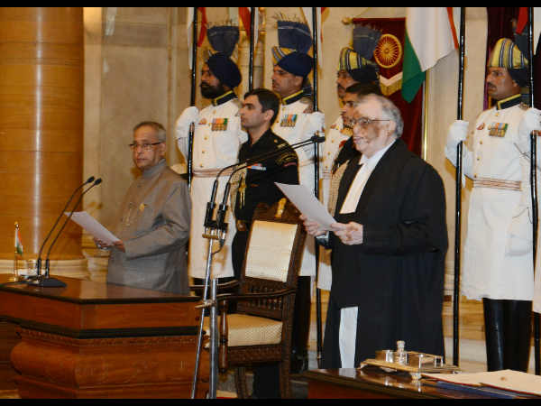 ರಾಷ್ಟ್ರಪತಿ ಭವನದ ದರ್ಬಾರ್ ಹಾಲ್ ನಡೆದ ಸರಳ ಸಮಾರಂಭದಲ್ಲಿ ಪ್ರಣವ್ ಮುಖರ್ಜಿ ಅವರು ಪ್ರಮಾಣ ವಿಧಿ ಬೋಧಿಸಿದರು.