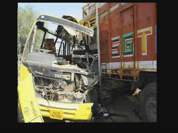 ಜೈಪುರ,ಜುಲೈ 31: ಮಂಗಳವಾರ ಬೆಳಗ್ಗೆ 7 ಗಂಟೆಯಲ್ಲಿ ಶಾಲೆಗೆ ಹೊರಟಿದ್ದ ಮಕ್ಕಳು ಬಸ್ ಚಾಲಕನ ತಪ್ಪಿನಿಂದಾಗಿ ಭೀಕರ ರಸ್ತೆ ಅಪಘಾತದಿಂದ ಸಾವಿನ ಮನೆ ಸೇರಿದ್ದಾರೆ. ರಾಜಸ್ಥಾನದ ಹುನಮಾನಗಢ ಜಿಲ್ಲೆಯಲ್ಲಿ ಗೋಲುವಾಲಾ ಬಳಿ ರಾಷ್ಟ್ರೀಯ ಹೆದ್ದಾರಿಯಲ್ಲಿ ಈ ಅವಘಡ ಸಂಭವಿಸಿದೆ.