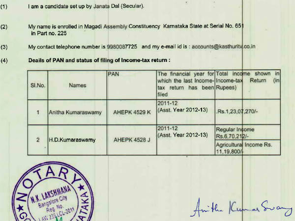 ಕುಮಾರಸ್ವಾಮಿಗಿಂತ ಮತ್ತೆ ಅನಿತಾ ಹೆಚ್ಚು ಶ್ರೀಮಂತೆ