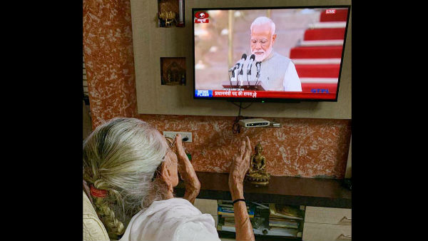 ಅಹ್ಮದಾಬಾದ್, ಮೇ 30 : ತಮ್ಮ ಮಗ ಭಾರತದ ಪ್ರಧಾನಿಯಾಗಿ ಸತತ ಎರಡನೇ ಬಾರಿ ಪ್ರಮಾಣ ವಚನ ಸ್ವೀಕರಿಸುತ್ತಿದ್ದುದನ್ನು ನೋಡಿ 99 ವರ್ಷದ ಹೀರಾಬೆನ್ ಅವರು ಅಹ್ಮದಾಬಾದ್ ನಲ್ಲಿರುವ ನಿವಾಸದಲ್ಲಿಯೇ ಕುಳಿತುಕೊಂಡು ಟಿವಿಯಲ್ಲಿ ನೋಡಿ, ಚಪ್ಪಾಳೆ ತಟ್ಟಿ ಸಂತಸಪಟ್ಟಿದ್ದಾರೆ.