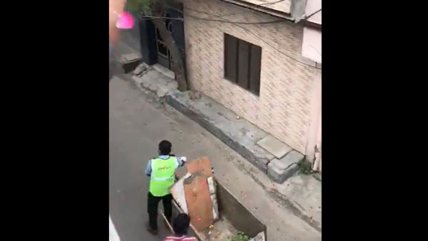 ಕಸ ಸಂಗ್ರಹ ಮಾಡುವ ಕಾರ್ಮಿಕನ ಮೇಲೆ ಹೂಮಳೆ ಸುರಿದ ನಾಗರಿಕರು