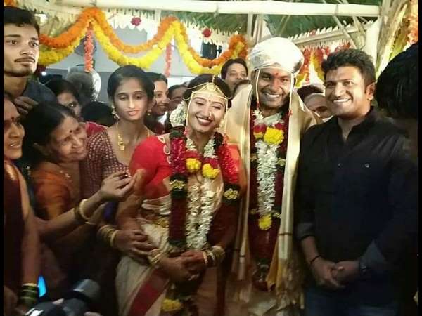 ಮದುವೆ ಸಮಾರಂಭದಲ್ಲಿ ಭಾಗವಹಿಸಿದ್ದ ನಟ ಪುನೀತ್ ರಾಜಕುಮಾರ್ ನವದಂಪತಿಗಳಿಗೆ ಶುಭ ಹಾರೈಸಿ ಅಕ್ಷತೆ ಹಾಕಿ ಶುಭ ಹಾರೈಸಿದರು.