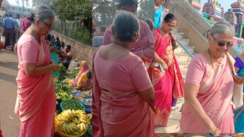 ಜಮಖಂಡಿಯಲ್ಲಿ ವಾರದ ಸಂತೆಗೆ ಬಂದು ತರಕಾರಿ ಖರೀದಿಸಿದ ಸುಧಾಮೂರ್ತಿ