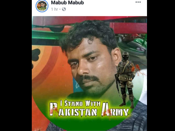 ಬಳ್ಳಾರಿ ಜಿಲ್ಲೆಯ ಹೂವಿನಹಡಗಲಿ ತಾಲೂಕಿನ ಹೊಳಲು ಗ್ರಾಮದ ಮೆಹಬೂಬ್ ಮುಜಾವರ್ ಬಂಧನಕ್ಕೊಳಗಾದ ದೇಶ ವಿರೋಧಿ.ಈತ ಕಳೆದ ಎರಡು ದಿನಗಳ ಹಿಂದೆ ಪಾಕಿಸ್ತಾನದ ಸೇನೆಗೆ ಬೆಂಬಲಿಸಿ ಫೇಸ್ ಬುಕ್ ನಲ್ಲಿ ಪೋಸ್ಟರ್ ಶೇರ್ ಮಾಡಿದ್ದ.