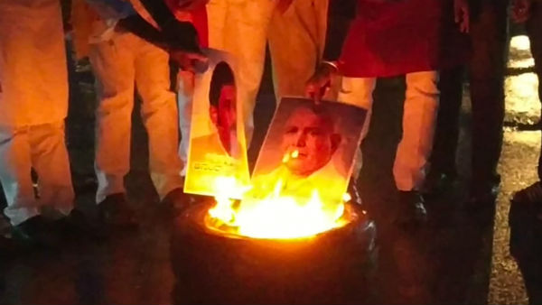 ಪ್ರತ್ಯೇಕ ವಿಜಯನಗರ ಜಿಲ್ಲೆ ರಚನೆ ವಿರೋಧಿಸಿ ಅಖಂಡ ಬಳ್ಳಾರಿ ಜಿಲ್ಲಾ ಹೋರಾಟ ಸಮಿತಿಯು ಕೈಗೊಂಡಿದ್ದ ಬಳ್ಳಾರಿ ಬಂದ್ ಹಿನ್ನೆಲೆಯಲ್ಲಿ ಜಿಲ್ಲಾ ಉಸ್ತುವಾರಿ ಸಚಿವ ಆನಂದಸಿಂಗ್, ಸಿಎಂ ಬಿ.ಎಸ್ ಯಡಿಯೂರಪ್ಪ ಭಾವಚಿತ್ರ ದಹನ ಮಾಡುವ ಮೂಲಕ ಆಕ್ರೋಶ ವ್ಯಕ್ತಪಡಿಸಿದರು.
