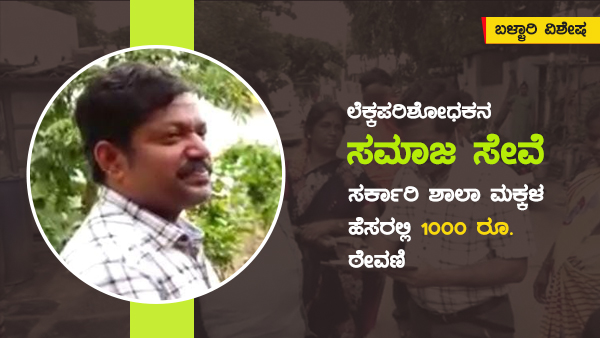 ಬಳ್ಳಾರಿ, ಆಗಸ್ಟ್ 23; ಬಳ್ಳಾರಿಯ ಲೆಕ್ಕಪರಿಶೋಧಕರೊಬ್ಬರು ಸರ್ಕಾರಿ ಶಾಲೆಯಲ್ಲಿ ಓದುವ ಮಕ್ಕಳ ಹೆಸರಿನಲ್ಲಿ 1000 ರೂ. ಠೇವಣಿ ಇಡುತ್ತಿದ್ದಾರೆ. ಸರ್ಕಾರಿ ಶಾಲೆಯಿಂದಲೇ ತನ್ನ ಜೀವನ ರೂಪಿಸಿಕೊಂಡಿರುವ ಅವರು ಈಗ ಬಡ ಮಕ್ಕಳ ನೆರವಿಗೆ ನಿಂತಿದ್ದಾರೆ.