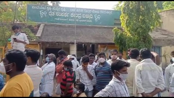 ಬಳ್ಳಾರಿ: ಮೆಣಸಿನಕಾಯಿ ಬೀಜಕ್ಕಾಗಿ ರೈತರ ಪ್ರತಿಭಟನೆ