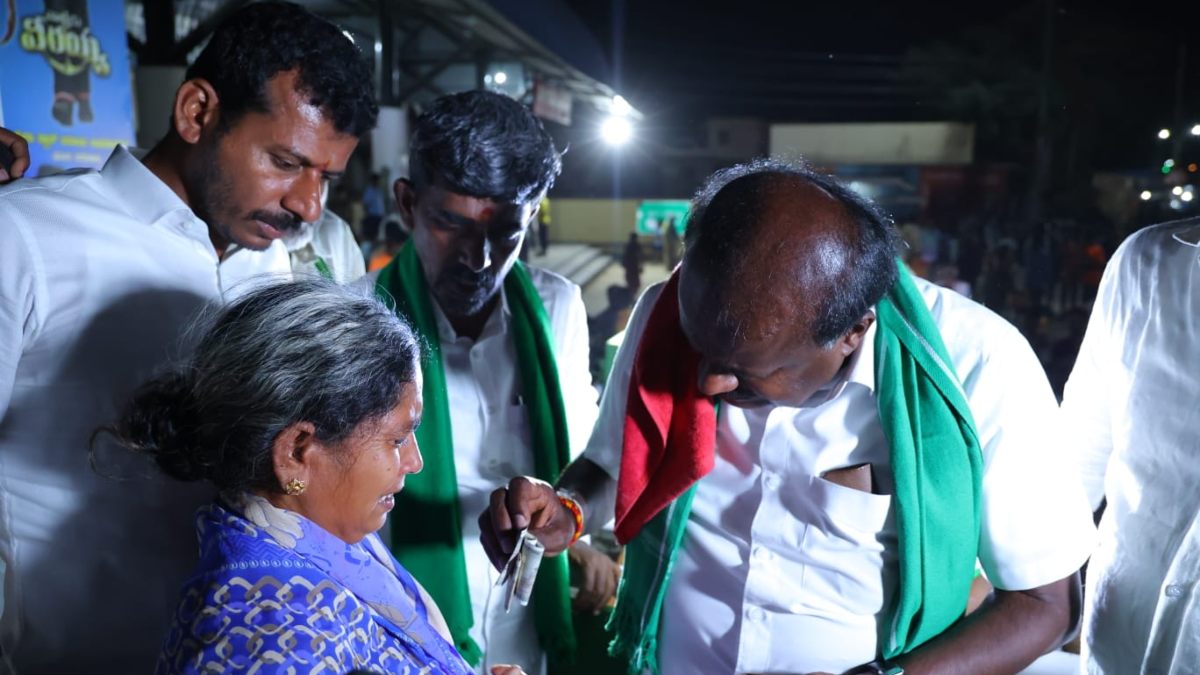 ಮಹಿಳೆಯ ಕಷ್ಟಕಂಡು ಮರುಗಿದ ಕುಮಾರಸ್ವಾಮಿ ಬೆಂಗಳೂರಿಗೆ ಪತಿಯನ್ನು ಕರೆದುಕೊಂಡು ಬಂದರೆ ಚಿಕಿತ್ಸೆ ಕೊಡಿಸುವೆ ಎಂದು ಭರವಸೆ ನೀಡಿದ್ದಾರೆ. ಇದೇ ವೇಳೆ ಮಹಿಳೆಗೆ ಬೆಂಗಳೂರಿಗೆ ಬರುವಂತೆ ಹಣದ ನೆರವನ್ನು ಕೂಡಾ ನೀಡಿದ್ದಾರೆ.
