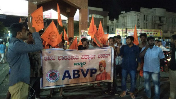 ಬಳ್ಳಾರಿಯಲ್ಲಿ ಅಮೂಲ್ಯ ವಿರುದ್ಧ ರಾತ್ರಿ ಪ್ರತಿಭಟನೆಗಿಳಿದ ಎಬಿವಿಪಿ