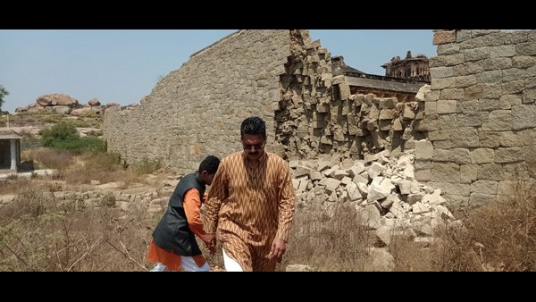 ಐತಿಹಾಸಿಕ ಹಂಪಿಯಲ್ಲಿ ಕೋಟೆ ಅರಮನೆ ಗೋಡೆ ಕುಸಿತ: ಶ್ರೀಕೃಷ್ಣದೇವರಾಯ ಭೇಟಿ