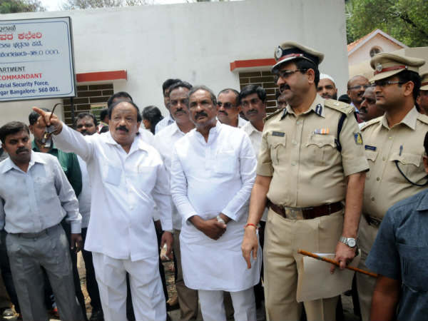 ಮೂಲ ಸೌಕರ್ಯ ಸಚಿವ ರೋಷನ್ ಬೇಗ್, ಬೆಂಗಳೂರು ಪೊಲೀಸ್ ಆಯುಕ್ತ ರಾಘವೇಂದ್ರ ಔರಾದ್ಕರ್, ಪೊಲೀಸ್ ಹೌಸಿಂಗ್ ಕಾರ್ಪೋರೇಷನ್ನ ಎಡಿಜಿಪಿ ಪ್ರವೀಣ್ ಸೂದ್ ಮುಂತಾದವರು ಗೃಹ ಸಚಿವರ ಜೊತೆ ಬುಧವಾರ ನಗರದ ವಿವಿಧ ಪೊಲೀಸ್ ವಸತಿ ಗೃಹಗಳಿಗೆ ಭೇಟಿ ನೀಡಿದರು.