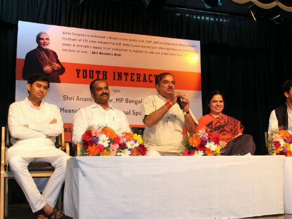 ಮಂಗಳವಾರ ಭಾರತೀಯ ವಿದ್ಯಾಭವನದಲ್ಲಿ ಯೂತ್ ಫಾರ್ ಡೆಮಾಕ್ರಸಿ ಸಂಸ್ಥೆ ಆಯೋಜಿಸಿದ್ದ ಕಾಲೇಜು ವಿದ್ಯಾರ್ಥಿಗಳ ಜತೆಗಿನ ಸಂವಾದ ಕಾರ್ಯಕ್ರಮದಲ್ಲಿ ಅವರು ಮಾತನಾಡುತ್ತಿದ್ದರು. ಬಿಜೆಪಿ ರಾಷ್ಟ್ರೀಯ ವಕ್ತಾರೆ ಮೀನಾಕ್ಷಿ ಲೇಖಿ ಮತ್ತು ಬೆಂಗಳೂರು ಸೆಂಟ್ರಲ್ ಕ್ಷೇತ್ರದ ಬಿಜೆಪಿ ಅಭ್ಯರ್ಥಿ ಪಿ.ಸಿ.ಮೋಹನ್ ಸಹ ಸಂವಾದ ಕಾರ್ಯಕ್ರಮದಲ್ಲಿ ಪಾಲ್ಗೊಂಡಿದ್ದರು.