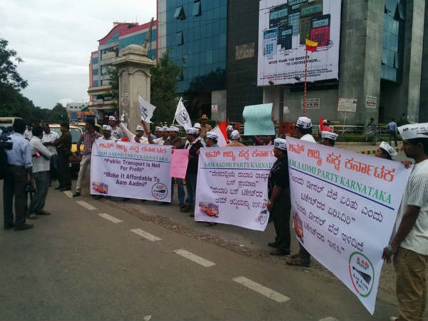 ಬುಧವಾರ ಸಂಜೆ ಆಮ್ ಆದ್ಮಿ ಪಕ್ಷದ ಕಾರ್ಯಕರ್ತರು ಶಾಂತಿನಗರ ಬಸ್ ನಿಲ್ದಾಣದ ಬಳಿ ಅಹೋರಾತ್ರಿ ಧರಣಿಯನ್ನು ಆರಂಭಿಸಿದ್ದು, ಡೀಸೆಲ್ ದರ ಕಡಿಮೆಯಾಗಿದೆ ಆದ್ದರಿಂದ ಪ್ರಯಾಣದರವನ್ನು ಕಡಿಮೆ ಮಾಡಬೇಕು ಎಂದು ಸರ್ಕಾರವನ್ನು ಒತ್ತಾಯಿಸುತ್ತಿದ್ದಾರೆ. [ಪ್ರಯಾಣ ದರ ಏಕೆ ಇಳಿಸಲು ಸಾಧ್ಯವಿಲ್ಲ]
