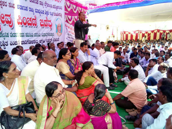 ಪ್ರತಿಭಟನೆಯ ನೇತೃತ್ವ ವಹಿಸಿರುವ ಕರ್ನಾಟಕ ರಾಜ್ಯ ಅನುದಾನಿತ ಶಾಲಾ ಕಾಲೇಜುಗಳ ಪಿಂಚಣಿ ವಂಚಿತ ನೌಕರರ ಸಂಘದ ರಾಜ್ಯಾಧ್ಯಕ್ಷ ಜಿ.ಹನುಮಂತಪ್ಪ ಮಾತನಾಡಿ 2006ರ ಏಪ್ರಿಲ್ ನಂತರ ಅನುದಾನಕ್ಕೊಳಪಟ್ಟು ವೇತನ ಪಡೆಯುತ್ತಿರುವ ಅನುದಾನಿತ ವಿದ್ಯಾ ಸಂಸ್ಥೆಗಳ ಸುಮಾರು ನಾಲವತ್ತು ಸಾವಿರಕ್ಕೂ ಹೆಚ್ಚು ನೌಕರರಿರಗೆ ಹಳೆಯ ನಿಶ್ಚಿತ ಪಿಂಚಣಿ ಯೋಜನೆ ಜಾರಿಯಾಗಬೇಕು.