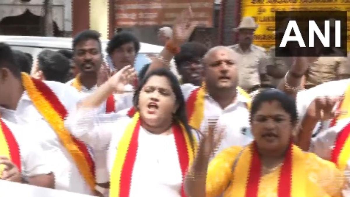 ಬೆಂಗಳೂರು, ಏಪ್ರಿಲ್ 10: ಅಮುಲ್ ಹಾಲು ಮಾರಾಟವನ್ನು ವಿರೋಧಿಸಿ ಮತ್ತು ಕರ್ನಾಟಕದಲ್ಲಿ ನಂದಿನಿ ಉತ್ಪನ್ನಗಳ ಬಳಕೆಯನ್ನು ಪ್ರೋತ್ಸಾಹಿಸುವಂತೆ ಕೋರಿ ಕರ್ನಾಟಕ ರಕ್ಷಣಾ ವೇದಿಕೆಯಿಂದ ಬೆಂಗಳೂರು ನಗರದಲ್ಲಿ ಪ್ರತಿಭಟನೆ ನಡೆಸಲಾಯಿತು.