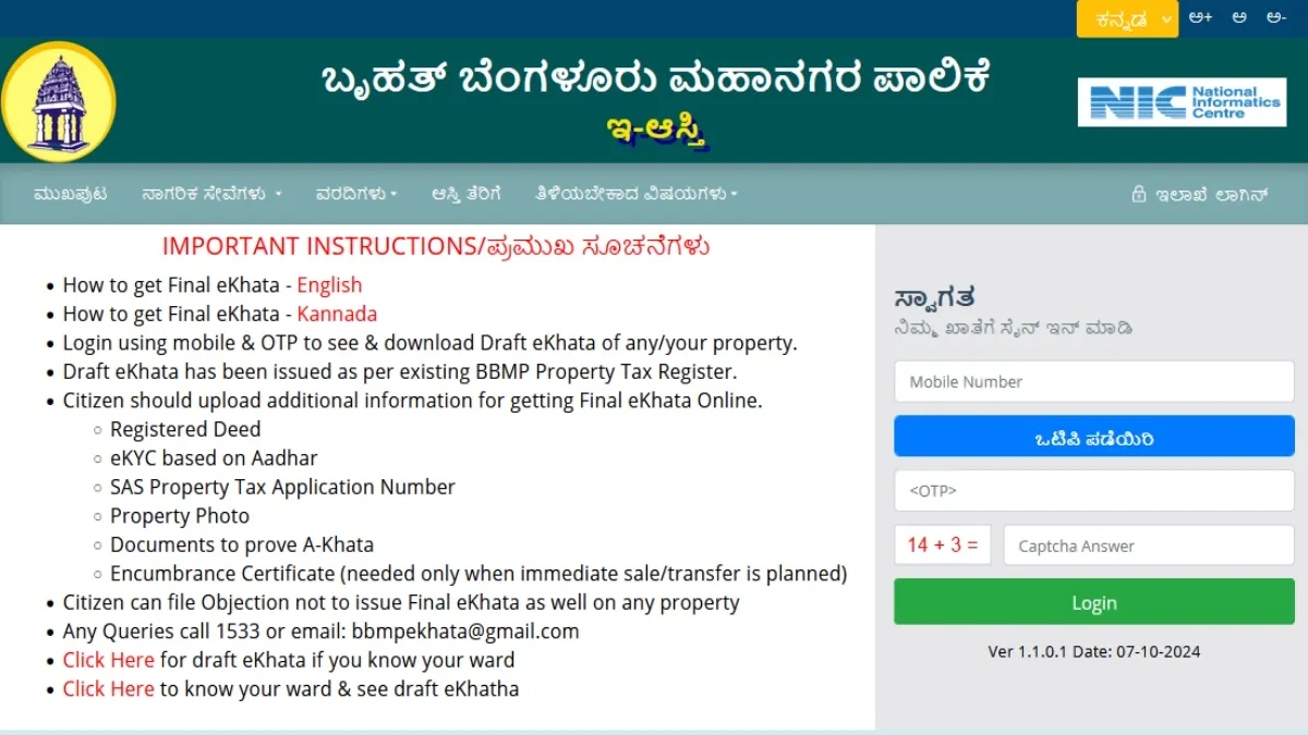 * ಆಸ್ತಿ ಮಾಲೀಕರು ಮೊದಲು BBMPeAasthi.karnataka.gov.in ಭೇಟಿ ನೀಡಬೇಕು.