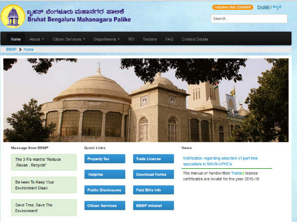 ಬಿಬಿಎಂಪಿ ವೆಬ್ಸೈಟ್ನ ಹೊಸ ವಿನ್ಯಾಸ ನೋಡಿ