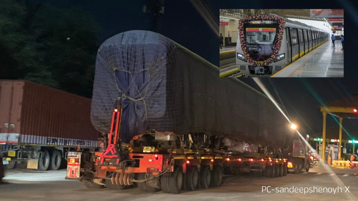 ಸೋಮವಾರ ಬೆಳಗಿನ ಜಾವ ನೈಸ್ ರಸ್ತೆ ಮಾರ್ಗವಾಗಿ ಹೆಬ್ಬಗೋಡಿ ಡಿಪೋಗೆ ಆರು ಬೋಗಿಗಳ ರೈಲು ಸೆಟ್ ಆಗಮಿಸಿತು. ಈ ಬಗ್ಗೆ ಫೋಟೋಗಳನ್ನು ಸಾಮಾಜಿಕ ಜಾಲತಾಣ ಎಕ್ಸ್ ಖಾತೆಯಲ್ಲಿ ಸಂದೀಪ್ (@sandeepshenoyh) ಅನ್ನುವವರು ಹಂಚಿಕೊಂಡಿದ್ದಾರೆ. ನಾನು 'ಮೆಟ್ರೋದ ಹೊಸ ರೈಲುಗಳ ಸೆಟ್ ಅನ್ನು ನೋಡಿದೆ! ಹಳದಿ ಮಾರ್ಗದ 9 ರೈಲು ಇದಾಗಿದ್ದು, ಸಂಧು ಲಾಜಿಸ್ಟಿಕ್ಸ್ ಇದನ್ನು ಸಾಗಿಸಿದೆ' ಎಂದು ಬರೆದುಕೊಂಡಿದ್ದಾರೆ.