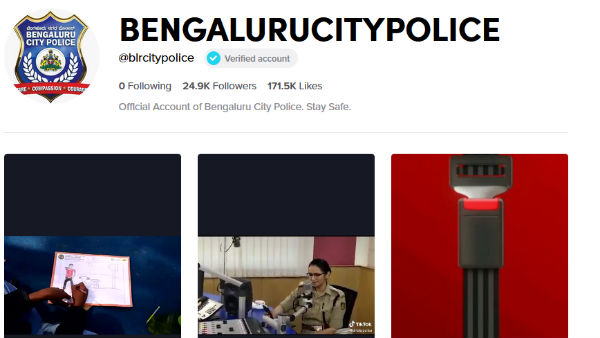 ಟಿಕ್ಟಾಕ್ಗೆ ಬೆಂಗಳೂರು ನಗರ ಪೊಲೀಸರ ಸೇರ್ಪಡೆ