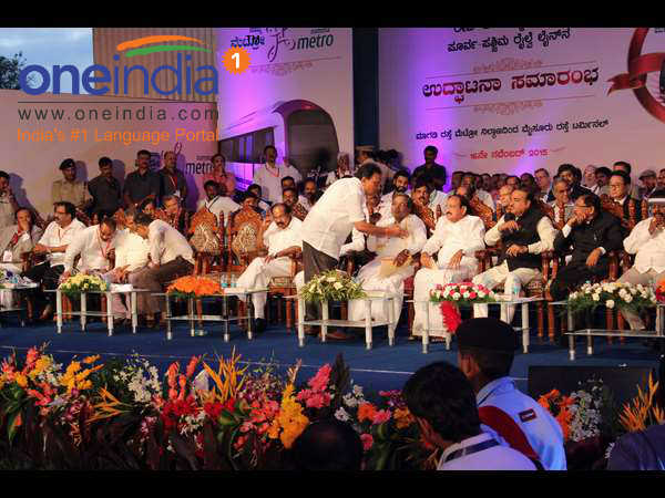 ಬೆಂಗಳೂರು, ನವೆಂಬರ್, 17: ಮಾಗಡಿ ರಸ್ತೆ-ಮೈಸೂರು ರಸ್ತೆ ನಡುವಿನ ಮೆಟ್ರೋ ರೈಲು ಸಂಚಾರ ಉದ್ಘಾಟನೆ ಕಾರ್ಯಕ್ರಮ ರಾಜಕಾರಣಿಗಳ ಮಾತಿನ ಮಂಟಪಕ್ಕೆ ಸಾಕ್ಷಿಯಾಗಿದ್ದು ಮಾತ್ರ ವಿಪರ್ಯಾಸ. ಇಲ್ಲಿಯೂ ಸಹ 'ಹೆಸರಿಡುವ ರಾಜಕಾರಣ' ಒಳನುಸುಳಿತ್ತು.