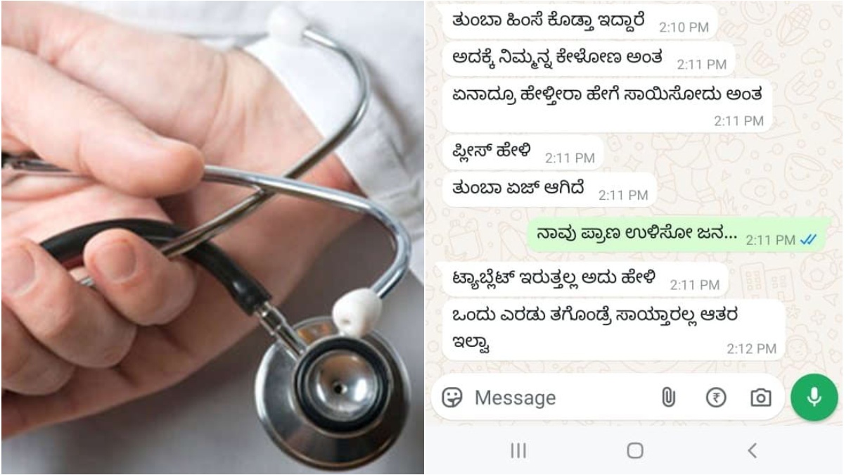 'ನಿಮ್ಮ ಬಳಿ ಹೇಳಲು ಭಯವಾಗುತ್ತಿದೆ. ಅತ್ತೆಯನ್ನು ಸಾಯಿಸುವ ವಿಚಾರ, ಹೇಗೆ ಸಾಯಿಸುವುದು ಅಂತಾ. ತುಂಬಾ ಹಿಂಸೆ ಕೊಡುತ್ತಿದ್ದಾರೆ. ಅದಕ್ಕೆ ನಿಮ್ಮನ್ನು ಕೇಳೋಣ ಅಂತ. ಏನಾದ್ರೂ ಹೇಳ್ತೀರಾ ಹೇಗೆ ಸಾಯಿಸೋದು ಅಂತ. ಪ್ಲೀಸ್ ಹೇಳಿ. ಮಾತ್ರೆ ಇರುತ್ತಲ್ಲ ಅದು ಹೇಳಿ. ಒಂದು, ಎರಡು ತಗೊಂಡ್ರೆ ಸಾಯ್ತಾರಲ್ಲ ಆತರ ಇಲ್ವಾ?' ಎಂದು ಮಹಿಳೆ ಅತ್ತೆಯನ್ನು ಸಾಯಿಸಲು ಮಾತ್ರೆ ಹೇಳಿ ಎಂದು ವೈದ್ಯರ ಬಳಿ ವಾಟ್ಸಾಪ್ ಸಂದೇಶದ ಮೂಲಕ ಕೇಳಿದ್ದಾಳೆ.