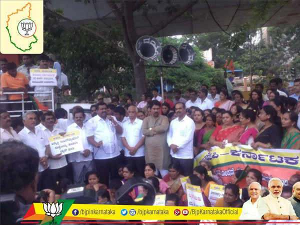 ಬೆಂಗಳೂರಿನಲ್ಲಿ ಶನಿವಾರ ಬಿಜೆಪಿ ಬೃಹತ್ ಪ್ರತಿಭಟನೆ ನಡೆಸಿತು. ಆಮ್ನೆಸ್ಟಿ ಇಂಟರ್ ನ್ಯಾಷನಲ್ ಇಂಡಿಯಾ ಸಂಸ್ಥೆ ವಿರುದ್ಧ ಪ್ರತಿಭಟನೆ ನಡೆಸಿದ ಅಖಿಲ ಭಾರತ ವಿದ್ಯಾರ್ಥಿ ಪರಿಷತ್ (ಎಬಿವಿಪಿ) ಕಾರ್ಯಕರ್ತರ ಮೇಲೆ ಲಾಠಿ ಚಾರ್ಜ್ ನಡೆಸಿದ ಸರ್ಕಾರದ ಕ್ರಮವನ್ನು ಖಂಡಿಸಲಾಯಿತು.['ಎಬಿವಿಪಿ ಪ್ರತಿಭಟನೆ ಹಿಂದೆ ಬಿಜೆಪಿ ಕೈವಾಡವಿದೆ']