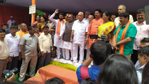 ಬೆಂಗಳೂರು, ಜೂನ್ 14: ಜಿಂದಾಲ್ ಕಂಪನಿಗೆ 3667 ಎಕರೆ ಭೂಮಿಯನ್ನು ಅತಿ ಕಡಿಮೆ ದರಕ್ಕೆ ಮಾರುವ ರಾಜ್ಯ ಸರ್ಕಾರದ ತೀರ್ಮಾನ ವಿರೋಧಿಸಿ ಮತ್ತು ಪರಿಹಾರ ಕಾರ್ಯ ಕೈಗೊಳ್ಳುವಲ್ಲಿ ವೈಫಲ್ಯ ಖಂಡಿಸಿ ರಾಜ್ಯ ಸರ್ಕಾರದ ವಿರುದ್ಧ ಬಿಜೆಪಿ ರಾಜ್ಯಾಧ್ಯಕ್ಷ ಬಿಎಸ್ ಯಡಿಯೂರಪ್ಪ ನೇತೃತ್ವದಲ್ಲಿ ಧರಣಿ ಆರಂಭಗೊಂಡಿದೆ.