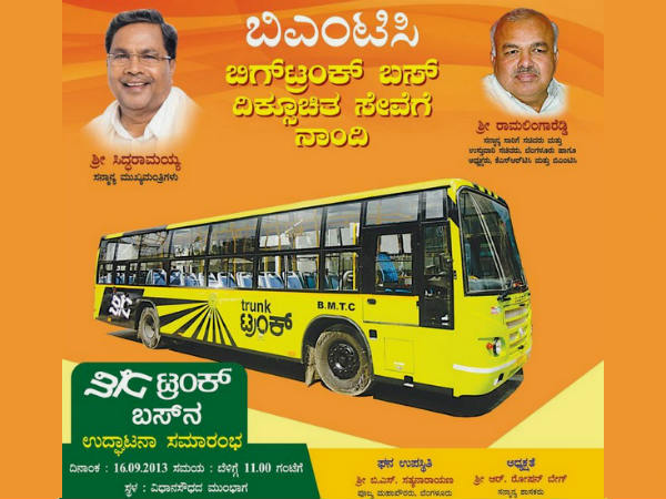 ಮುಖ್ಯಮಂತ್ರಿ ಸಿದ್ದರಾಮಯ್ಯ ಅವರು ಇಂದು ಬೆಳಗ್ಗೆ ನಿಗದಿತ ಸಮಯಕ್ಕೆ ವಿಧಾನಸೌಧ ಮುಂಭಾಗ 'ಬಿಗ್ ಟ್ರಂಕ್ ಬಸ್' ಸೇವೆಗೆ ಚಾಲನೆ ನೀಡಿದರು. ಸುಮಾರು 80,000 ಪ್ರಯಾಣಿಕರು ಇದರ ಪ್ರಯೋಜನ ಪಡೆಯಬಹುದಾಗಿದೆ.