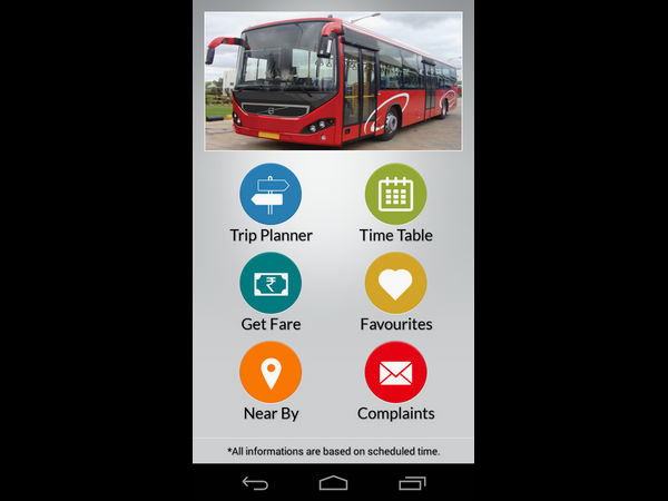 ಈ ಅಪ್ಲಿಕೇಷನ್ ತೆರೆದಾಕ್ಷಣ ಟ್ರಿಪ್ ಪ್ಲಾನರ್, ವೇಳಾಪಟ್ಟಿ, ಪ್ರಯಾಣ ದರ, ದೂರುಗಳು ಸೇರಿದಂತೆ ಒಟ್ಟು ಆರು ಆಯ್ಕೆಗಳು ಲಭ್ಯವಾಗುತ್ತವೆ.