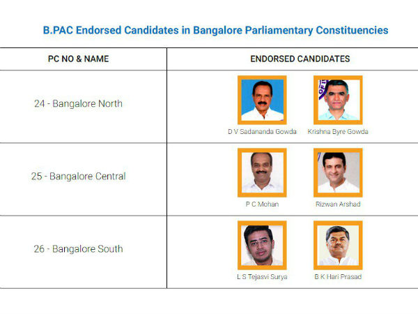 B.PAC endorsed candidates in Bangalore Parliamentary Constituencies for the upcoming Lok Sabha Elections 2019.