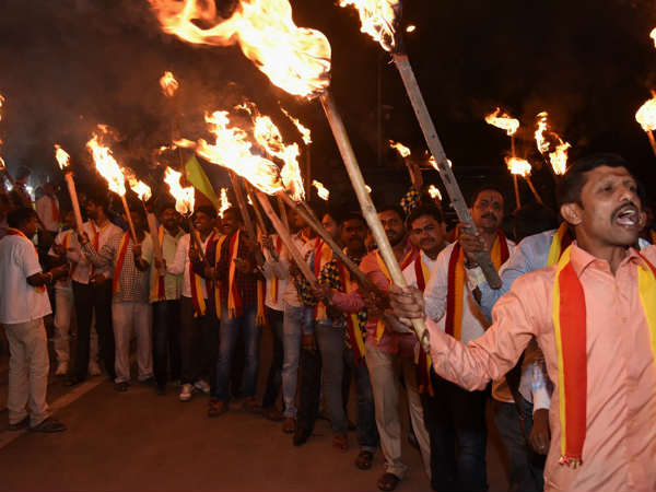 ಕರ್ನಾಟಕ ರಕ್ಷಣಾ ವೇದಿಕೆ ಅಧ್ಯಕ್ಷ ಟಿ.ಎ.ನಾರಾಯಣ ಗೌಡ ಅವರ ನೇತೃತ್ವದಲ್ಲಿ ಸೋಮವಾರ ರಾತ್ರಿ ಪಂಜಿನ ಮೆರವಣಿಗೆ ನಡೆಯಿತು. ಬೆಂಗಳೂರಿನ ಟೌನ್ ಹಾಲ್ನಿಂದ ಮೈಸೂರು ಬ್ಯಾಂಕ್ ವೃತ್ತದ ತನಕ ನಡೆದ ಪ್ರತಿಭಟನೆಯಲ್ಲಿ ನೂರಾರು ಕಾರ್ಯಕರ್ತರು ಪಾಲ್ಗೊಂಡಿದ್ದರು.[ಕಾವೇರಿ ವಿವಾದ : ಸೆಪ್ಟೆಂಬರ್ 9ರಂದು ಕರ್ನಾಟಕ ಬಂದ್]