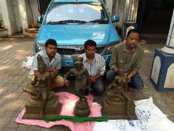 ವಿಗ್ರಹಗಳನ್ನು ಕೊಂಡು ಕೊಳ್ಳುವವರಂತೆ ನಟಿಸಿದ ಸಿಸಿಬಿ ಪೊಲೀಸರು ಮೂವರು ಆರೋಪಿಗಳನ್ನು ಬಂಧಿಸಿದ್ದಾರೆ. ಬಂಧಿತರಿಂದ ಮೂರು ವಿಗ್ರಹ, ಒಂದು ಕಾರನ್ನು ವಶಪಡಿಸಿಕೊಳ್ಳಲಾಗಿದ್ದು, ವಿಚಾರಣೆ ಮುಂದುವರೆದಿದೆ. [ಉತ್ತರಹಳ್ಳಿಯಲ್ಲಿ ರಾಮ, ಸೀತೆ ಪ್ರತ್ಯಕ್ಷ!]