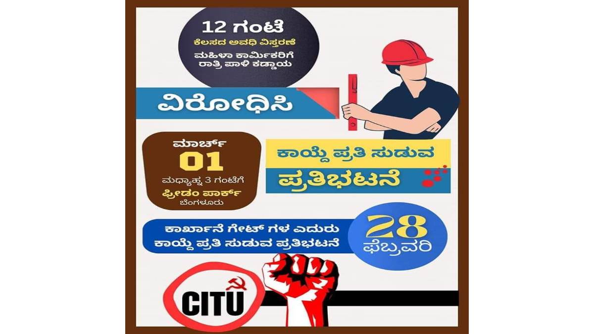 ದಿನದ ಕೆಲಸದ ಅವಧಿ 3 ಗಂಟೆ ಹೆಚ್ಚಳ: ಮಾರ್ಚ್ 1 ಕ್ಕೆ ರಾಜ್ಯಾದ್ಯಂತ ಪ್ರತಿಭಟನೆಗೆ ಕರೆ ನೀಡಿದ ಸಿಐಟಿಯು
