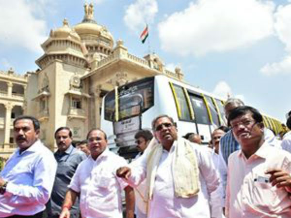 ವಿಧಾನಸೌಧದ ಮುಂಭಾಗದಲ್ಲಿ ಇಂದು ಸಿದ್ದರಾಮಯ್ಯ ಅವರು ಡೈಮಂಡ್ ಕ್ಲಾಸ್ ಬಸ್ ಚಾಲನೆ ನೀಡಿದರು. ಇದೇ ಸಂದರ್ಭದಲ್ಲಿ ಸಾರಿಗೆ ಇಲಾಖೆಯ ಕಾರ್ಯಸಾಧನೆ ಕುರಿತಾದ ಕೈಪಿಡಿ ಬಿಡುಗಡೆ ಮಾಡಿದರು. ಈ ವೇಳೆ ಸಾರಿಗೆ ಸಚಿವ ಹೆಚ್ ಎಂ ರೇವಣ್ಣ ಹಾಗೂ ಮಾಜಿ ಸಾರಿಗೆ ಸಚಿವ ಹಾಲಿ ಗೃಹ ಸಚಿವ ರಾಮಲಿಂಗಾ ರೆಡ್ಡಿ ಹಾಜರಿದ್ದರು.
