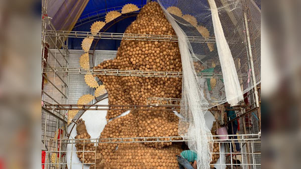 ಗಣೇಶ ಮೂರ್ತಿ ನಿರ್ಮಾಣಕ್ಕೆ 50 ಮಂದಿ ಕಳೆದ 21 ದಿನಗಳಿಂದ ಕೆಲಸ ಮಾಡುತ್ತಿದ್ದು ಮುಂಬರುವ ಸೋಮುವಾರದಂದು ತೆಂಗಿನ ಕಾಯಿ ಗಣಪನ ದರ್ಶನ ಪಡೆಯಬಹುದಾಗಿದೆ. ತೆಂಗಿನ ಕಾಯಿ ಬಹಳ ದಿನಗಳ ಕಾಲ ಕೆಡದೆ ಇರುತ್ತದೆ. ಹೀಗಾಗಿ ತೆಂಗಿನ ಕಾಯಿಯನ್ನು ಬಳಸಿ ಗಣಪನ ಮೂರ್ತಿಯನ್ನು ನಿರ್ಮಿಸಲಾಗುತ್ತಿದೆ. ಕಳೆದ ವರ್ಷ ಕಬ್ಬನ್ನು ಬಳಸಿ ಗಣಪನ ಮೂರ್ತಿಯನ್ನು ನಿರ್ಮಿಸಲಾಗಿತ್ತು ಹಾಗೂ ಅದಕ್ಕೂ ಹಿಂದಿನ ವರ್ಷ 400 ಕೆಜಿ ಹತ್ತಿ ಬಳಸಿ ಬೃಹತ್ ಗಣಪನ ಮೂರ್ತಿಯನ್ನು ನಿರ್ಮಿಸಿದ್ದೇವು ಎಂದು ಟ್ರಸ್ಟಿನ ವ್ಯವಸ್ಥಾಪಕರಾದ ರಾಮ್ ಮೋಹನ ರಾಜು ಅವರು ತಿಳಿಸಿದರು.