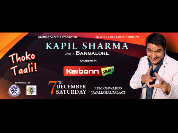 ಕಲರ್ಸ್ ವಾಹಿನಿಯ 'ಕಾಮಿಡಿ ನೈಟ್ಸ್ ವಿಥ್ ಕಪಿಲ್' ಕಾರ್ಯಕ್ರಮದಲ್ಲಿ ಮೂಲಕ ಪಂಚಿಂಗ್ ಡೈಲಾಗ್ ಹೊಡೆಯುವ ಕಪಿಲ್ ರನ್ನು ಬೆಂಗಳೂರಿಗರು ನೇರವಾಗಿ ಕಂಡು ಹಾಸ್ಯದ ಹೊನಲಿನಲ್ಲಿ ತೇಲಬಹುದಾಗಿದೆ. ಬೆಂಗಳೂರಿನ ಜಯಮಹಲ್ ಹೋಟೆಲಿನಲ್ಲಿ ಶನಿವಾರ ಸಂಜೆ ಲೈವ್ ಕಾಮಿಡಿ ಶೋ ನಡೆಯಲಿದೆ. ಆಸಕ್ತರು ಟಿಕೆಟ್ ಬುಕ್ ಮಾಡಿಕೊಳ್ಳಿ.