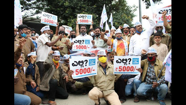 ಚಾಲಕರಿಗೆ "5 ಸಾವಿರ ಕೊಡಿ", ಎಎಪಿ ವಿನೂತನ ಪ್ರತಿಭಟನೆ
