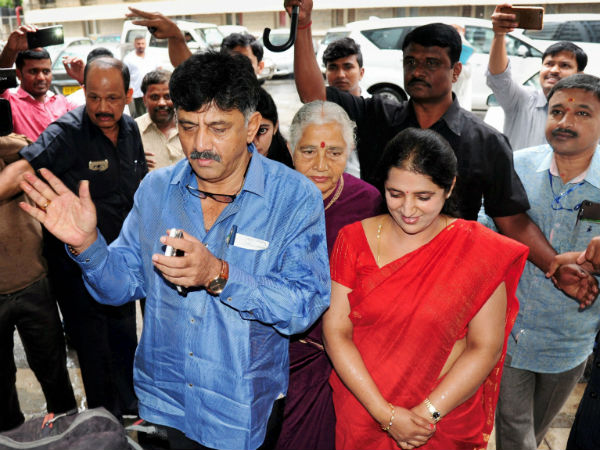 ಡಿಕೆ ಶಿವಕುಮಾರ್, ಅವರ ತಾಯಿ ಗೌರಮ್ಮ, ಪತ್ನಿ ಉಷಾ, ಮಗಳು ಐಶ್ವರ್ಯ ಜತೆ ಬೆಂಗಳೂರಿನ ಕ್ವೀನ್ಸ್ ರಸ್ತೆಯಲ್ಲಿರುವ ಆದಾಯ ತೆರಿಗೆ ಇಲಾಖೆ ಕಚೇರಿಗೆ ಆಗಮಿಸಿದರು.