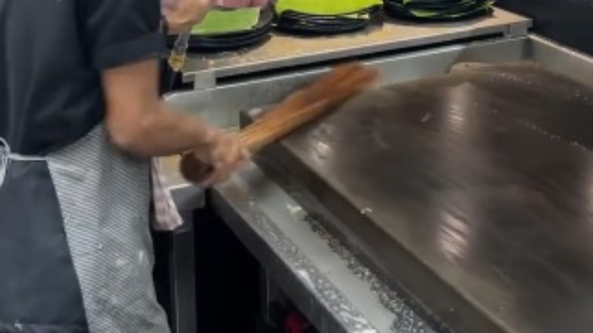ರೆಸ್ಟೋರೆಂಟ್ ಸಿಬ್ಬಂದಿ ದೋಸೆಗಳನ್ನು ತಯಾರಿಸಲು ತವಾವನ್ನು ತಯಾರಿಸಲು ಪ್ರಾರಂಭಿಸುತ್ತಾನೆ. ಅವನು ಅದರ ಮೇಲೆ ನೀರನ್ನು ಸಿಂಪಡಿಸುತ್ತಾನೆ ಮತ್ತು ಪೊರಕೆಯನ್ನು ಬಳಸಿ ತವಾವನ್ನು ಗುಡಿಸುತ್ತಾನೆ. ಬಿಸಿ ತವಾದಲ್ಲಿ ನೀರು ಉಗಿಗೆ ತಿರುಗುತ್ತದೆ ಮತ್ತು ಅವನು ಗುಡಿಸುವ ಕೆಲಸ ಮುಂದುವರಿಸುತ್ತಾನೆ. ಬಳಿಕ ಅವನು ದೋಸೆಗಳನ್ನು ಮಾಡಲು ವೃತ್ತಾಕಾರದ ಚಲನೆಯಲ್ಲಿ ಹಿಟ್ಟನ್ನು ಹಾಕಲು ಪ್ರಾರಂಭಿಸುತ್ತಾನೆ. ಒಂದು ತವಾ 12 ದೋಸೆಗಳನ್ನು ಮಾಡುವಷ್ಟು ದೊಡ್ಡದಾಗಿದೆ ಎಂದು ವಿವರಿಸಿದ್ದಾರೆ.