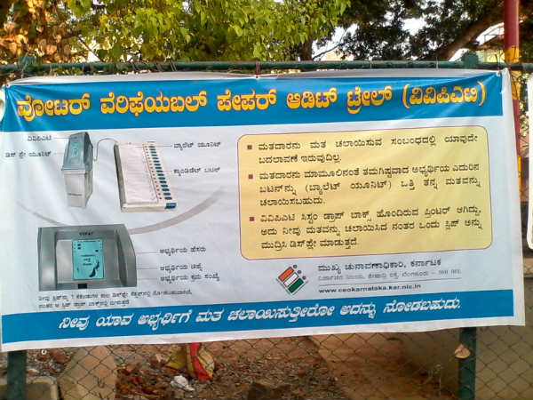 ಚುಣಾವಣಾ ಆಯೋಗ ಬೆಂಗಳೂರು ದಕ್ಷಿಣ ಕ್ಷೇತ್ರದ ವ್ಯಾಪ್ತಿಯಲ್ಲಿ ಬ್ಯಾನರ್ ಗಳನ್ನು ಹಾಕುವ ಮೂಲಕ ಜನರಿಗೆ ವಿವಿಪ್ಯಾಟ್ ಯಂತ್ರದ ಬಗ್ಗೆ ಮಾಹಿತಿ ನೀಡುತ್ತಿದೆ. ಮತಯಂತ್ರದಲ್ಲಿ ತಾನು ಚಲಾಯಿಸಿದ ಮತ ಇನ್ಯಾರಿಗೋ ಹೋಗಬಹುದು ಎಂಬ ಸಂಶಯ ನಿವಾರಣೆಗಾಗಿ ಚುನಾವಣಾ ಆಯೋಗ ಮೊದಲ ಬಾರಿಗೆ ಈ ವ್ಯವಸ್ಥೆ ಜಾರಿಗೆ ತಂದಿದ್ದು, ಬೆಂಗಳೂರು ದಕ್ಷಿಣ ಕ್ಷೇತ್ರದಲ್ಲಿ ಮಾತ್ರ ಬಳಕೆಯಾಗಲಿದೆ. [ನಿಮ್ಮಮತಗಟ್ಟೆ ತಿಳಿಯಬೇಕೆ ಎಸ್ಎಂಎಸ್ ಮಾಡಿ]