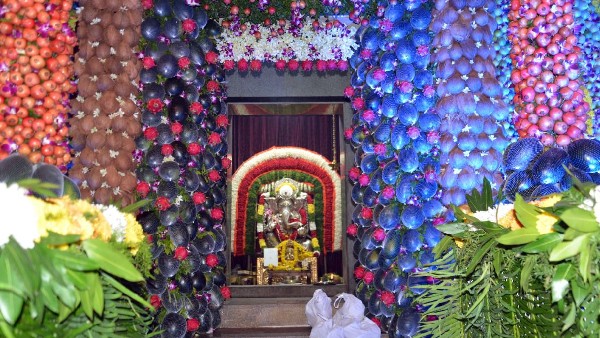 ಹಣ್ಣುಗಳಿಂದ ಅಲಂಕಾರಗೊಂಡ ಗಣಪನನ್ನು ಕಣ್ತುಂಬಿಕೊಂಡ ಭಕ್ತರು