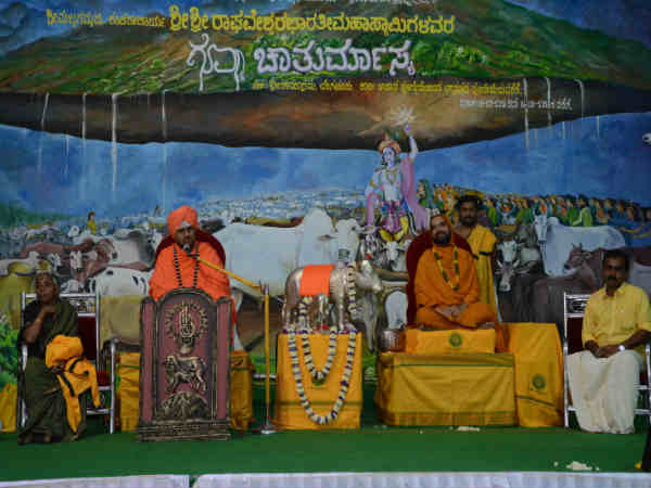 ನಗರದಲ್ಲಿ ಗುರುವಾರ (ಸೆ 1) "ಗೋಚಾತುರ್ಮಾಸ್ಯ"ದ 45ನೇ ದಿನದ ಧಾರ್ಮಿಕ ಸಭೆಯನ್ನು ಉದ್ದೇಶಿಸಿ ಮಾತನಾಡುತ್ತಿದ್ದ ಶ್ರೀಗಳು, ಗೋವು ತನ್ನ ಜೀವಿತಾವಧಿಯಲ್ಲಿ ಪ್ರೀತಿಯಿಂದ ನೀಡುವ ವಸ್ತುಗಳನ್ನು ಬಳಸಿಕೊಂಡರೆ ನೆಮ್ಮದಿಯ ಜೀವನ ನಡೆಸಲು ಸಾಧ್ಯ ಎಂದು ಹೇಳಿದ್ದಾರೆ. (ಭಾರತ ಗೋಮೂತ್ರ ರಫ್ತು ಮಾಡಿ ಕೀರ್ತಿಶಾಲಿಯಾಗಲಿ)