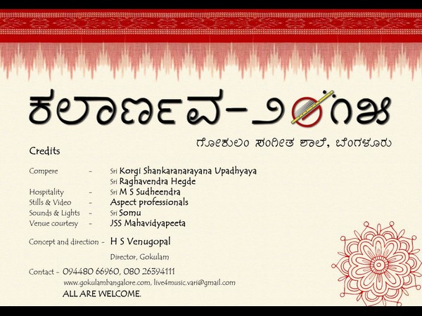 ಹಲವು ಗಾಯಕರನ್ನೊಳಗೊಂಡ ಶಾಸ್ತ್ರೀಯ ಸಂಗೀತ ಕಾರ್ಯಕ್ರಮ. ಗಾಯಕರು - ಕುಮಾರಿ. ವಾರಿಜಶ್ರೀ, ಜಯಚಂದ್ರ ರಾವ್. ಪ್ರವೀಣ್. ಡಿ. ರಾವ್, ಪ್ರಮಥ ಕಿರಣ್ , ಶ್ರೀ ಕಾರ್ತಿಕ್ ನಾಗರಾಜ್, ಕೆತ್ ಪೀಟರ್ಸ್ ಮತ್ತು ಶ್ರೀ ವಿಷ್ಣು ರಾಮಪ್ರಸಾದ್. (ಒನ್ ಇಂಡಿಯಾ ಸುದ್ದಿ)