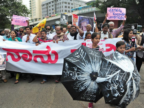ಗೌರಿ ಕೊಲೆಗಡುಕರ ಪತ್ತೆಗೆ ಆಗ್ರಹ, ಬೆಂಗಳೂರಿನಲ್ಲಿ ಪುನಃ ಪ್ರತಿಭಟನೆ